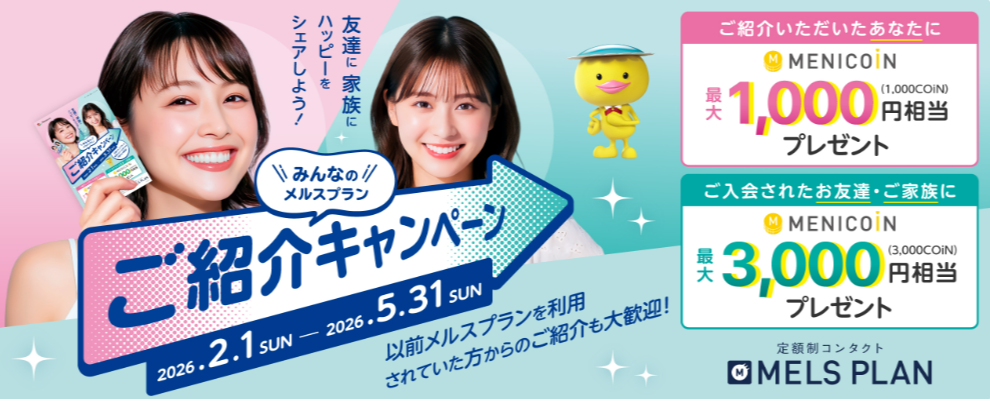 ご友人・ご家族 :MENICOIN 最大1,000円相当プレゼント(1,000COIN)