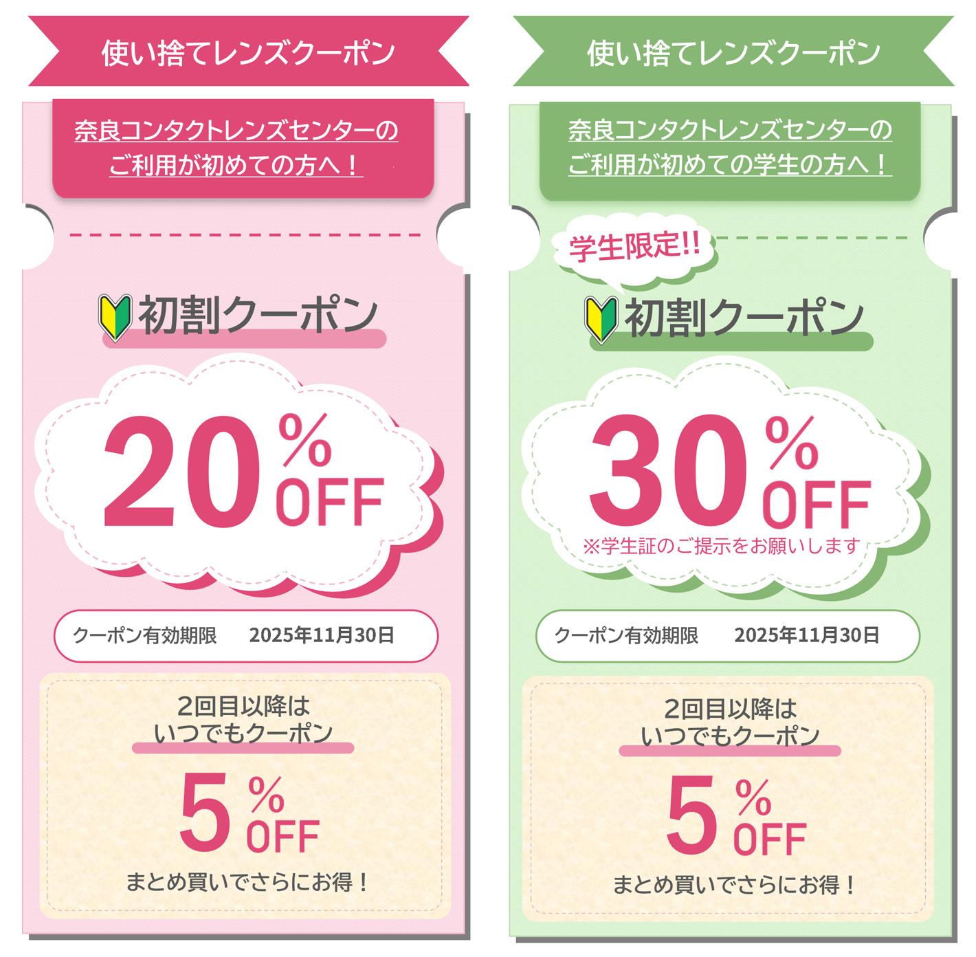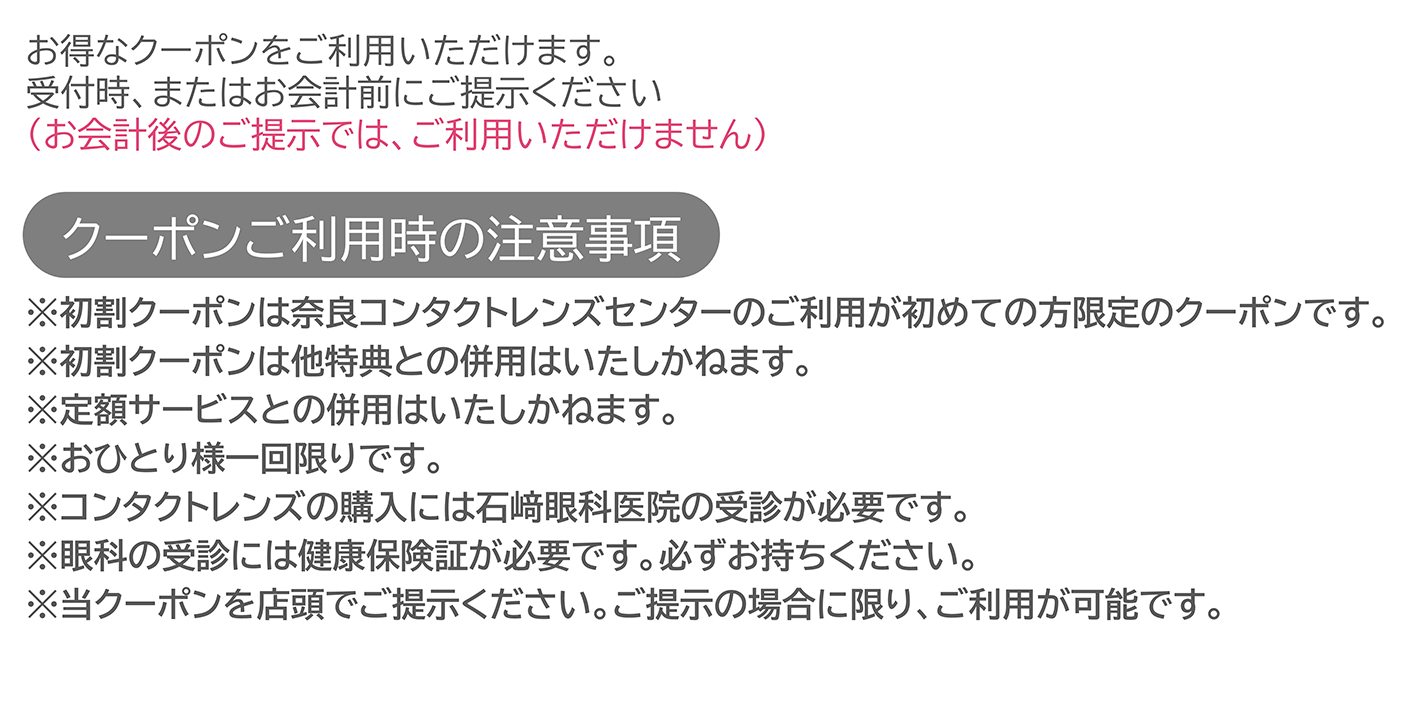クーポン券 奈良でコンタクトなら安心安全の奈良コンタクトレンズセンター